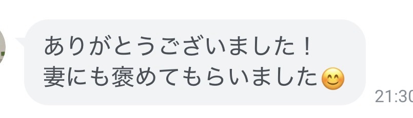 奥さまに髪型を褒めてもらったと!