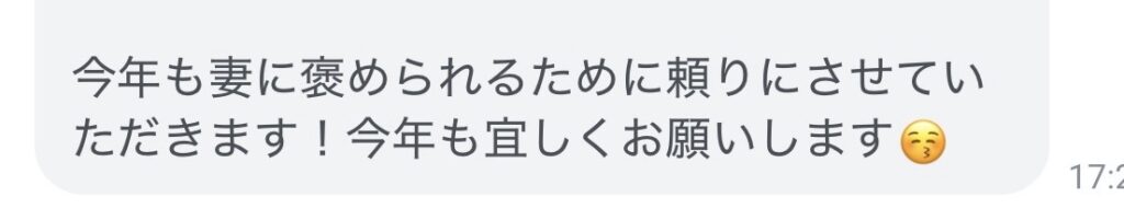 今日のブログはお客さまから届いたメッセージの自慢をします。