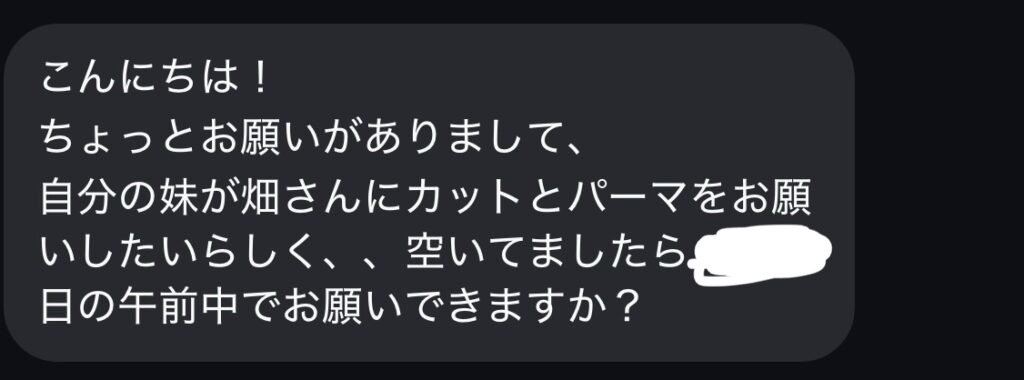ご紹介の場合の予約方法ですが、このようにいつも通ってくださっている方から繋げていただく形でも良いですし、ラインや予約フォームからの連絡でも大丈夫です!