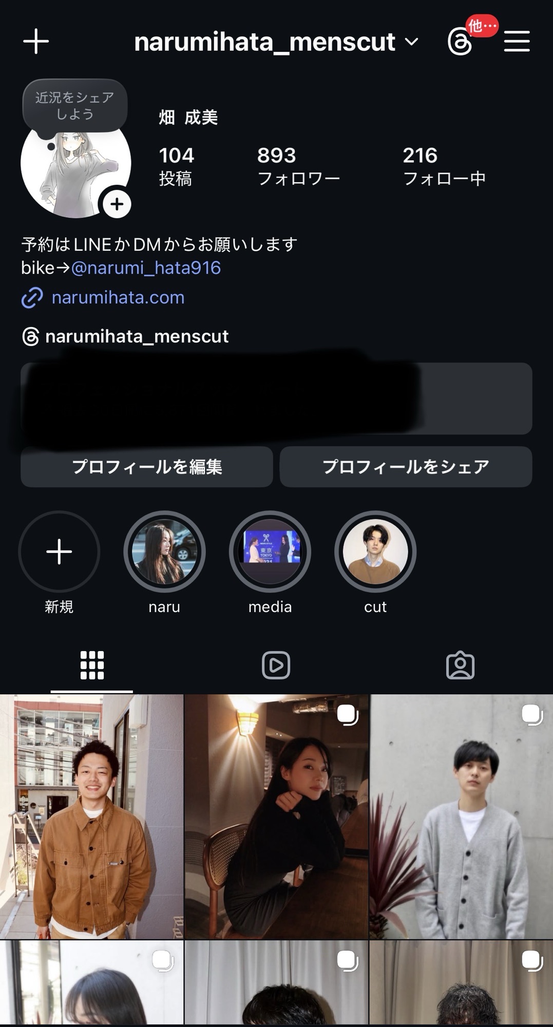 Instagramはたまに思いついた時に投稿しています。主にお客さまのことです。そしてたまに私の自撮りです。